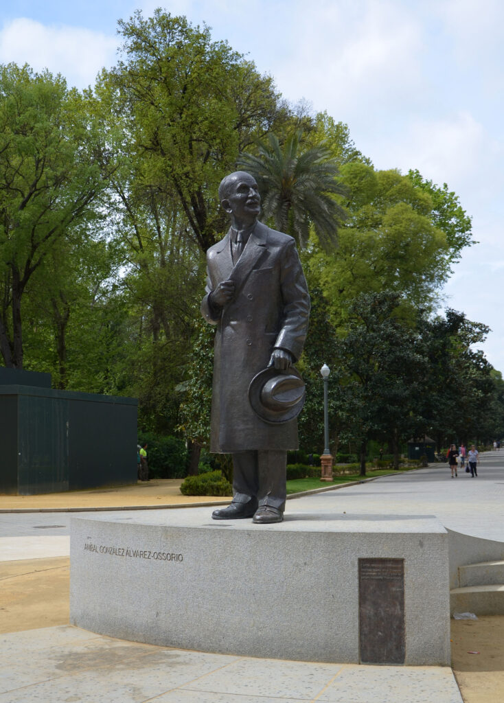 Arquitecto y máximo referente de la arquitectura regionalista Sevillana. Fue el arquitecto director de la exposición Iberoamericana desde 1911 hasta 1926. Considerado el arquitecto español más importante de los primeros años del siglo XX. Como creador del regionalismo sevillano, D. Aníbal González, fue creador de formas ornamentales, especialmente prolíficas en las fachadas, dentro de su estilo único, el arquitecto buscaba una identidad autóctona de tiempos pasados, en los que el ladrillo visto, el hierro forjado, el azulejo y la yesería, eran materiales básicos de su construcción. También Sevilla le debe a este Magnífico arquitecto, el particular olor de Azahar en nuestras calles. Aunque ya había naranjos en Sevilla desde la época musulmana. Solo existían unos pocos árboles, en algunas plazas. Donde sí era más habitual ver estos árboles frutales eran en casa señorial privada. Fue D. Aníbal González, quien saco a la calle la decoración del Naranjo.